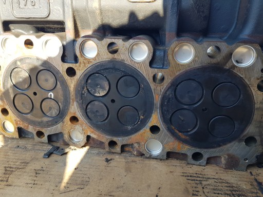 Głowica z demontażu uszkodzonego silnika dołem, dopiero po demontażu ukazało się pęknięcie ( zaznaczone na zdjęciu ) , wcześniej brak objawów.