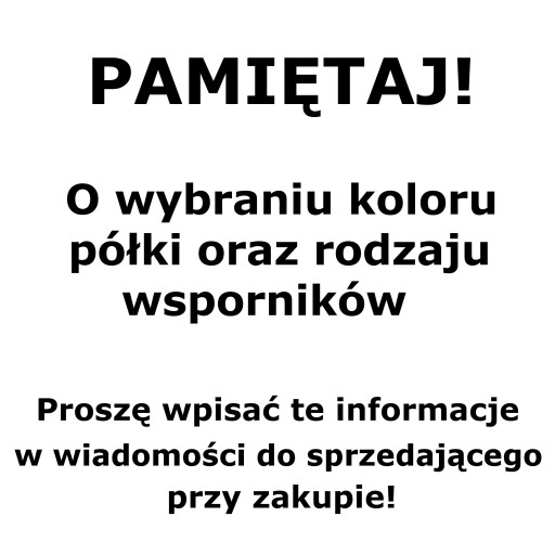 Prosimy o podanie koloru wykończenia półki oraz wybranego rodzaju wsporników w wiadomości do sprzedającego przy zakupie.
