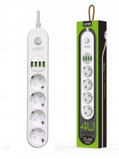 Listwa marki Ldnio SE4432 to listwa zasilająca i ładowarka USB w jednym. Posiada gniazda zasilające typu F oraz cztery porty USB. Listwa zasilająca może działać w przedziale napięć od 100 V do 250 V, dzięki czemu doskonale sprawdzi się również w podróży. Niezależnie od tego co podłączysz, technologia automatycznie wykryje rodzaj podłączonego sprzętu, dostosuje do niego odpowiednią moc ładowania oraz ochroni sprzęt przed przegrzaniem i przeładowaniem.