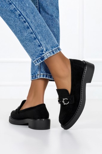 MOKASYNY PÓŁBUTY BUTY DAMSKIE ZE SPRZĄCZKĄ SKÓRZANA WKŁADKA CZARNE NEW