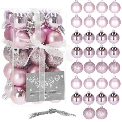 Odkryj świąteczny blask z naszym zestawem bombek choinkowych w różowym kolorze. Ten elegancki mix 30 sztuk bombek o średnicy 3 cm doda Twojej choince wyjątkowego charakteru i świątecznego nastroju. Wykonane z wysokiej jakości tworzywa sztucznego, nasze bombki są nietłukące, co gwarantuje ich trwałość przez wiele sezonów. Dzięki temu możesz cieszyć się pięknem świąt bez obaw o przypadkowe uszkodzenia.