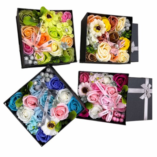Prezent w postaci flower boxu z kompozycją z mydlanych kwiatów idealnie sprawdzi się na Walentynki, Dzień Kobiet, Dzień Mamy, Dzień Babci, Dzień Dziadka, Dzień Taty, prezent pod choinkę, upominek, jako alternatywa żywych kwiatów, prezent na wesele, ślub, prezent dla pracowników, jako podziękowanie dla gości, prezent na dzień nauczyciela, prezent na urodziny, prezent dla dziewczyny czy ukochanej. Będzie to świetny pomysł zamiast bukietu oraz nie zwiędnie tak jak żywe kwiaty. Kompozycja z kwiatów i róż mydlanych jest alternatywą dla wiecznych róż. Wieczne róże jako mydlane kwiaty nadadzą się do kąpieli, jako dekoracja czy prezenty dla pracowników. Super się sprawdzi jako dodatek do prezentu.