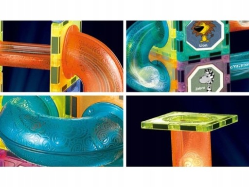 ✅ Proste łączenia - panele konstrukcyjne łączymy za pomocą magnesów we wnętrzu klocków. Pozostałe elementy konstrukcyjne, elementy toru kulkowego, łączymy za pomocą "zatrzasków", którymi spinamy panel magnetyczny z elementem zjeżdżalni toru.
