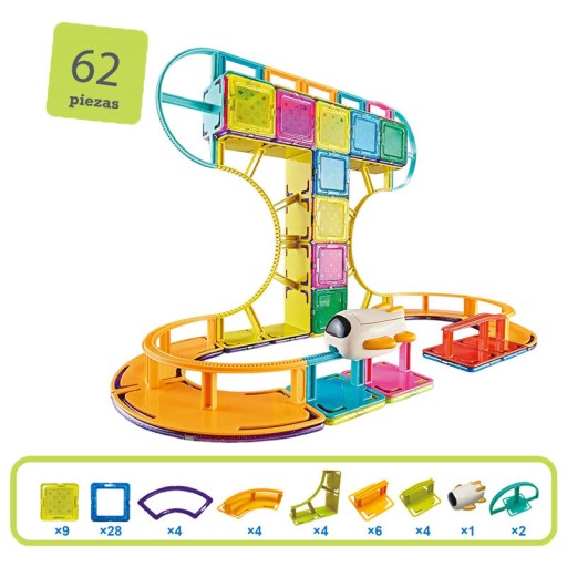 Magnetyczne klocki konstrukcyjne podniebny lot to ekscytująca zabawka dla dzieci, która zapewni wiele godzin zabawy i rozrywki. Łączy ze sobą dwa rodzaje zabawek- klocki magnetyczne i tor dla rakiety. Zabawka ma funkcję edukacyjną. Pozwala na rozwijanie zdolności manualnych przy budowaniu toru, kreatywności oraz zachęca do eksperymentu i tworzenia coraz nowszy budowli i konstrukcji.