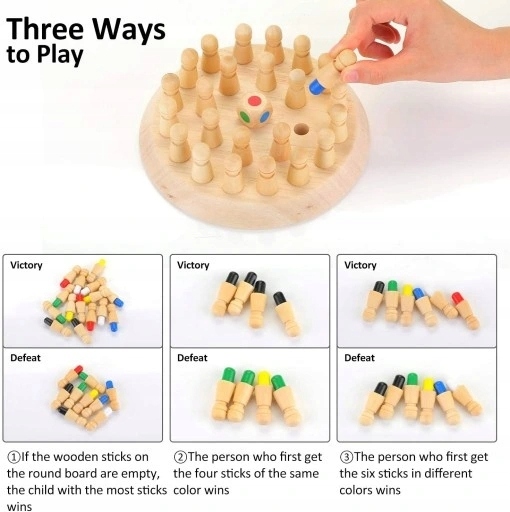 Memory Match Stick Chess Game - Nasz Memory Match Stick jest idealny dla dzieci poniżej 5 roku życia, może nie tylko poprawić koncentrację Twojego dziecka, ale także ćwiczyć jego pamięć. Warto poznać kolory.Wysoka jakość - Nasze zabawki edukacyjne wykonane są z wysokiej jakości klonu, kolory są jasne, części są starannie pomalowane, krawędzie są gładkie, a drewno nie odpryskuje. Nie uszkadza łatwo rąk dzieci, bardzo odpowiedni dla dzieci.Trzy sposoby gry - Nasze drewniane szachy pamięciowe mogą grać 2-6 graczy. Powinieneś losowo położyć drewniane kije z ukrytymi kolorami na okrągłej drewnianej planszy, a następnie zacząć grać z przyjaciółmi i rodziną, obrazek pokazuje trzy sposoby grania w gry. Możesz także ustawić własne zasady, aby w nią grać.