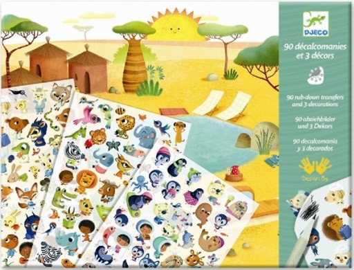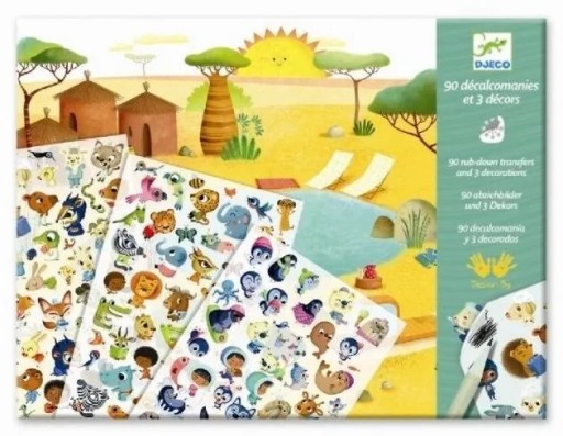Zestaw od marki DJECO kryje w sobie mnóstwo kreatywnej zabawy dla małych twórców! Komplet zawiera trzy arkusze z tłami do ozdabiania oraz trzy arkusze z kalkomanią. Każde tło to inny krajobraz z różnych kontynentów - pustynny z Azji, safari z Afryki oraz zimowy z Arktyki. Naklejki przedstawiają różne zwierzaki, postaci i rośliny, żyjące w różnych zakątkach świata - musisz je tylko odpowiednio dopasować...