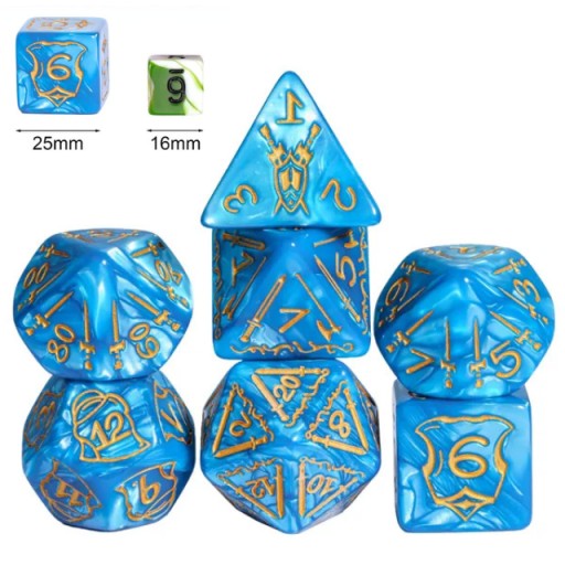 Komplet kości, czyli siedem wysokiej jakości kostek. Dzięki odpowiedniemu wyważeniu są bardzo wygodne w użyciu.