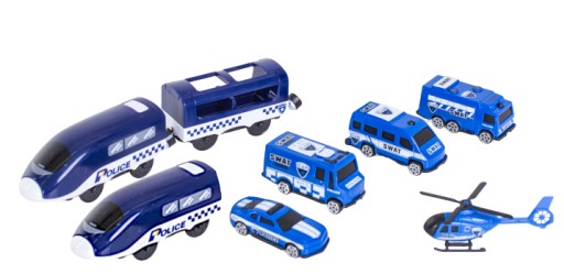 Kolejka jest wyjątkowa i spodoba się nie tylko miłośnikom pociągów, ale także policji. Oprócz długiego toru z tunelem i wiaduktem, zawiera również komisariat policji z lądowiskiem oraz 4 policyjne auta i helikopter.