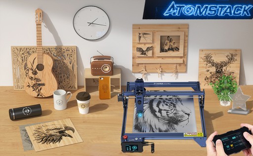 Pole plamki laserowej grawerki laserowej ATOMSTACK A10 Pro wynosi 0,06 mm. Dzięki technologii podwójnej kompresji punktowej i rzeczywistej mocy lasera 10 W, łączy w sobie cięcie wysokoenergetyczne i precyzyjne grawerowanie w tym samym czasie, może ciąć drewniane deski o grubości 15 mm i czarny akryl oraz grawerować lustro ze stali nierdzewnej, metal, ceramikę, szkło.