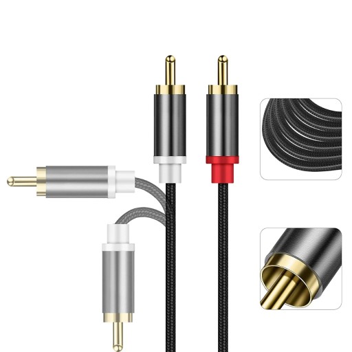 - Przewód zakończony pozłacanymi końcówkami (RCA)