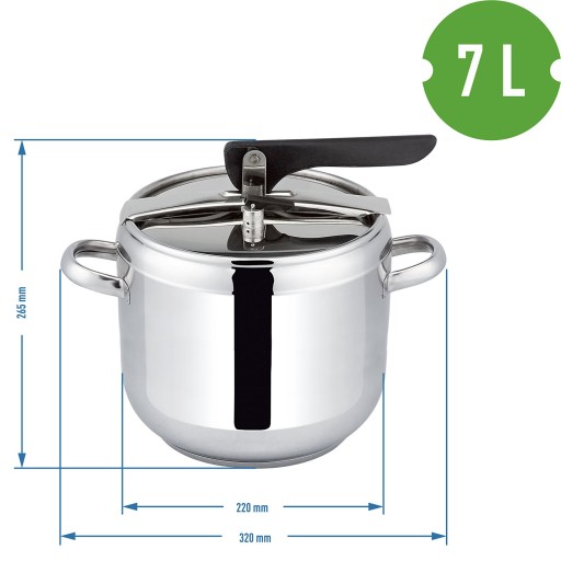 Proste i bezproblemowe gotowanie - szybkowar o pojemności 7 L pozwoli Ci w łatwy i szybki sposób przygotować ulubione dania w zdrowszych wersjach! Wysoka jakość - szybkowar wykonany jest z wysokiej jakości stali nierdzewnej i nadaje się do kuchenek gazowych, elektrycznych, ceramicznych oraz indukcji