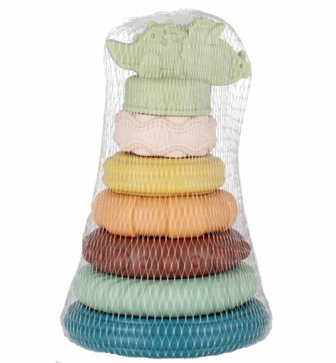 Pastelowe okręgi piramidki edukacyjnej doskonale sprawdzają się w pierwszym okresie nauki sortowania i ćwiczenia zdolności motorycznych.