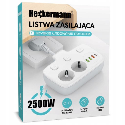 LISTWA ZASILAJĄCA PRZEDŁUŻACZ 2500W Z QC3.0 4x USB