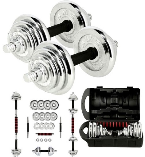✨STC21 HMS, zestaw chromowanych sztangielek w walizce, z funkcją sztangi.✨