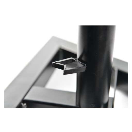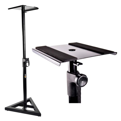 STAND4ME MON 1 to solidny, profesjonalny statyw pod monitory studyjne. Stojak w całości wykonany został ze stali pomalowanej proszkowo na kolor czarny. Dolna podstawa ma kształt trójkąta równobocznego. Posiada dokręcane, antypoślizgowe nóżki umożliwiające wypoziomowanie całego statywu. W zestawie znajdują się także kolce, które świetnie sprawdzają się na wykładzinowych powierzchniach. Górna podstawa pod odsłuch ma kształt kwadratu. Dwa doklejane do niej antypoślizgowe pasy eliminują wszelkie drgania rezonansowe powstające podczas pracy głośnika i skutecznie utrzymują kolumnę na miejscu. Stojak, oprócz poziomu minimalnego, posiada pięciopunktową regulację wysokości. Rozsuwa się na maksymalną wysokość 116 cm, a trzpieniowe zabezpieczenie sprawia, że jest w stanie utrzymać nawet cięższe kolumny. Dodatkowo sztyca wyposażona została w dwa zaczepy umożliwiające wygodne i estetyczne poprowadzenie w nich przewodów. Wszystko to sprawia, że statyw pod odsłuchy MON 1 to wygodna, przemyślana i solidna konstrukcja, która doskonale sprawdza się w profesjonalnym oraz domowym studio nagrań. Jednocześnie to stosunkowo tani statyw pod monitory studyjne.