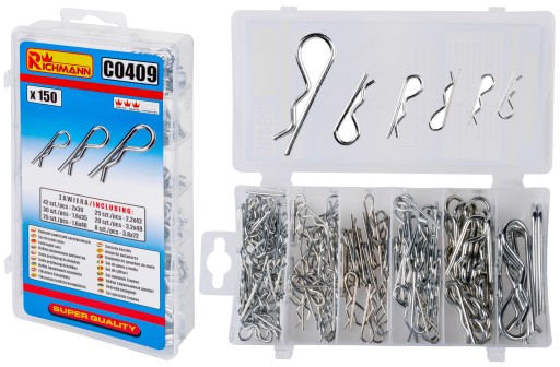 Zestaw 150 sztuk zawleczek sprężynowych.