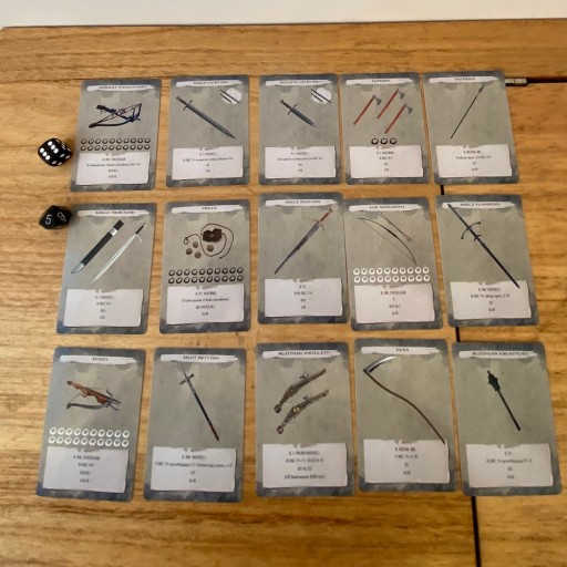 - 65 kart broni do walki bezpośredniej i dystansowej,