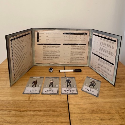 - ekran Mistrza Gry (do ukrycia przed graczami/graczkami rzutów prowadzącego, kart bohaterów niezależnych i potworów),