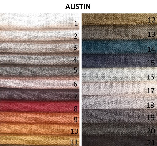 AUSTIN - Tkanina strukturalna, z widocznym splotem nici. Tkanina posiada certyfikat Oeko - Tex świadczący o jej wysokiej jakości.
