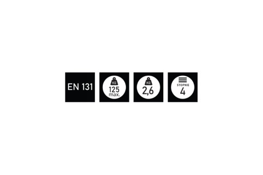 Wersja o wytrzymałości 150 kg odpowiada standardom wytrzymałościowym przy intensywnej pracy, określonych w normie EN131