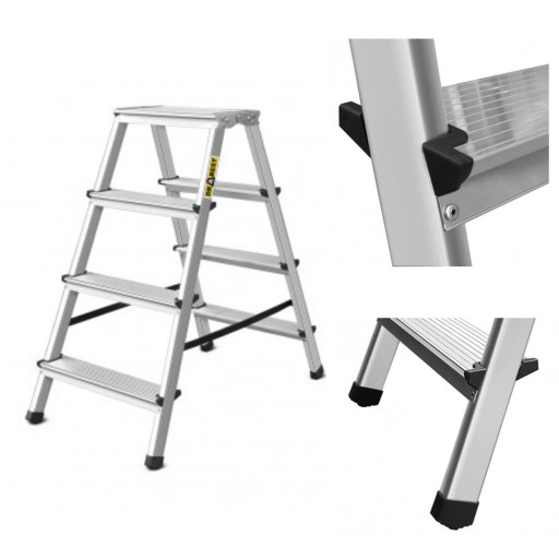 Drabina aluminiowa, dwustronna, czterostopniowa (wytrzymałość: 125 kg)