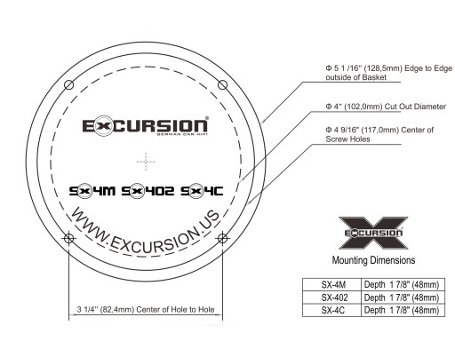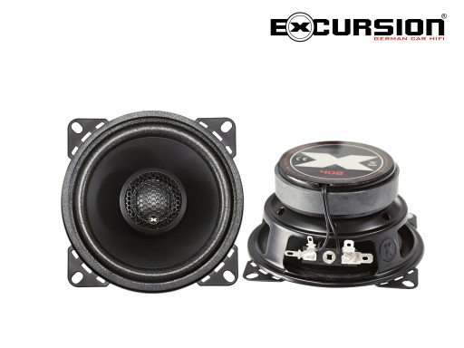Samochodowe 2-drożne głośniki współosiowe o średnicy 100 mm marki Excursion z serii SX (Street eXcursion). Jest to konstrukcja wykorzystująca szereg sprawdzonych naturalnych materiałów, technologii i rozwiązań, które od wielu lat są uznawane jako jedne z najlepszych dla tego rodzaju produktów oferowanych przez branżę Home i Car Audio, również w modelach pozycjonowanych w dużo wyższej klasie cenowej. Należą do nich między innymi sztywne i lekkie membrany mid-wooferów ADC z 2-warstwowego prasowanego papieru zewnętrznie zaimpregnowanego specjalną substancją antyrezonansową oraz wysokiej jakości detalicznie brzmiące głośniki wysokotonowe z kopułkami 20 mm wykonanymi z naturalnego jedwabiu. Nie od dziś wiadomo, że właśnie papierowe membrany zapewniają najbardziej dynamiczne, wierne oraz naturalne brzmienie niskich i średnich tonów, a jedwabne kopułki dostarczają najbardziej detalicznych wysokich tonów. Na uwagę zasługują także stabilne stalowe kosze posiadające dodatkowe otwory symetrycznie rozłożone pod dolnym zawieszeniem, których zadaniem jest wspomaganie systemu chłodzenia cewki. Takich materiałów i rozwiązań nie posiada większość konkurencyjnych produktów w podobnej cenie. Sprawia to, że głośniki Excursion z serii SX są niemal bezkonkurencyjne w swojej klasie. Doskonale sprawdzają się także jako bardzo dobrze brzmiące zamienniki samochodowych głośników fabrycznych (OEM) w przystępnej cenie.