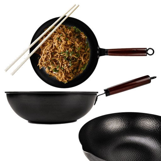 WOK STAL WĘGLOWA 30CM PATELNIA DUŻA DO DAŃ CHIŃSKICH GŁĘBOKA INDUKCJA