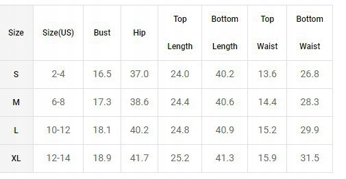 S,Długość,61,Talia,79,Biust,91,Rękaw,59,Biodra,94,Spodnie Talia,64,Spodnie Długość,100