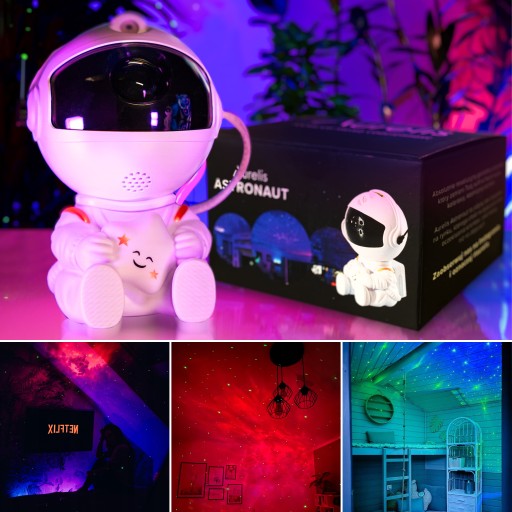 Absolutnie rewolucyjny gwiezdny projektor, który zamieni Twój sufit w fascynującą, kolorową, kosmiczną otchłań. Aurelis Astronaut to jedyny taki projektor na rynku, którego efekt na żywo przerasta oczekiwania klientów i jest jeszcze lepszy niż na zdjęciach!
