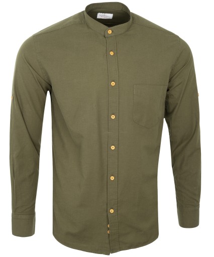 Хлопковая РУБАШКА, ЗЕЛЕНЫЙ ВОРОТНИК-СТОЙКА, XL SLIM