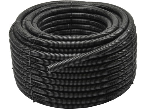 Rura instalacyjna, karbowana, giętka, nie rozprzestrzeniająca płomienia wykonana z PCV w kolorze czarnym, ze stalowym pilotem ułatwiającym przeciąganie przewodów.