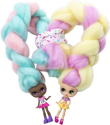 2 SURPRISE SCENTED COLLECTIBLE DOLLS: Each doll included in this BFF pack is hidden under 15 inches of super-soft cotton candy hair! Unravel the hair from around each doll to discover your vanilla sprinkle doughnuts scented Candylocks BFFs!