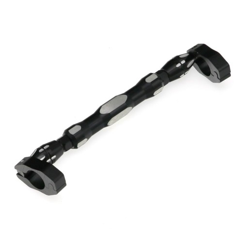 POPRZECZKA NA KIEROWNICE 22MM Z UCHWYTEM NA TELEFON, REGULOWANA DŁUGOŚĆ, WYKONANA W CAŁOŚCI Z ALUMINIUM .WYMIARY PODANE NA ZDJĘCIU.MINIMALNY ROZSTAW UCHWYTU NA TELEFON 52MM , MAX.100MM.