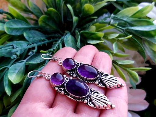 Zrobiono z indyjskiego srebra(ze stopu srebra i miedzi).Centrum oprawiony naturalny Ametyst . Ręczne wykonanie indyjskiego jubilera. Nowy bez metki.