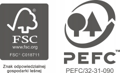 Chcemy poinformować naszych klientów, że używamy tylko i wyłącznie płyt meblowych od renomowanego producenta posiadającego certyfikaty FSC (Forest Stewardship Council) oraz PEFC (Programme for the Endorsement of Forest Certification).
