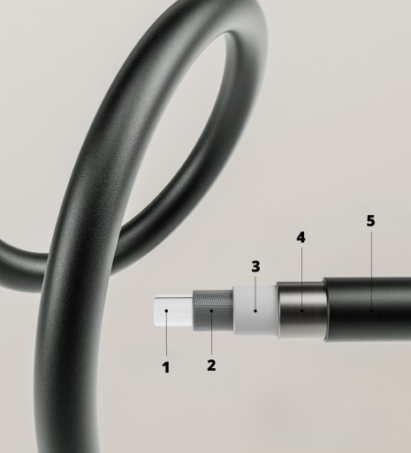 Dzięki wielowarstwowej konstrukcji, wąż jest dużo bardziej odporny na uszkodzenia mechanicze a także nie nagrzewa się podczas gorących kąpieli