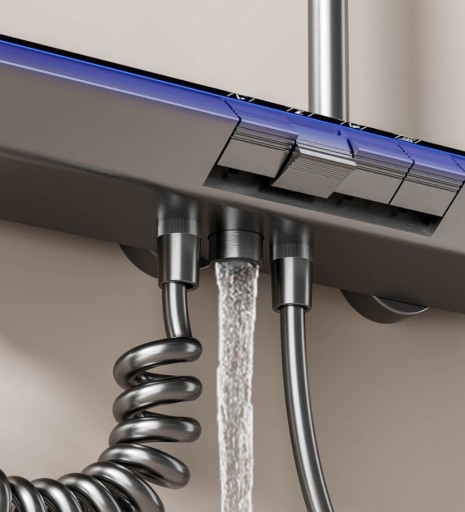 - Precyzyjna kontrola wody: Panel wielofunkcyjny pozwala na precyzyjną kontrolę strumienia wodym i temperatury.