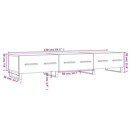 Szafka pod telewizor, brązowy dąb, 150x36x30 cm