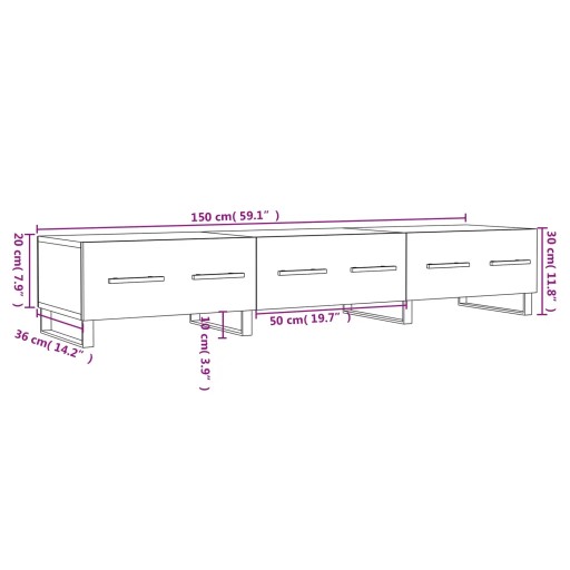 Szafka pod telewizor, szary dąb sonoma, 150x36x30 cm