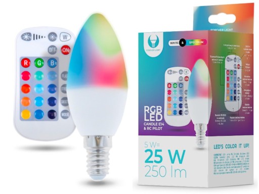 Nie potrzebujesz specjalnie przygotowywać instalacji elektrycznej, kupować dodatkowych zasilaczy czy sterowników. Wystarczy, że zamienisz standardowe żarówki na oferowany model żarówki E14 RGBW, który będzie pasował do Twojego kinkietu, żyrandola czy lampy!