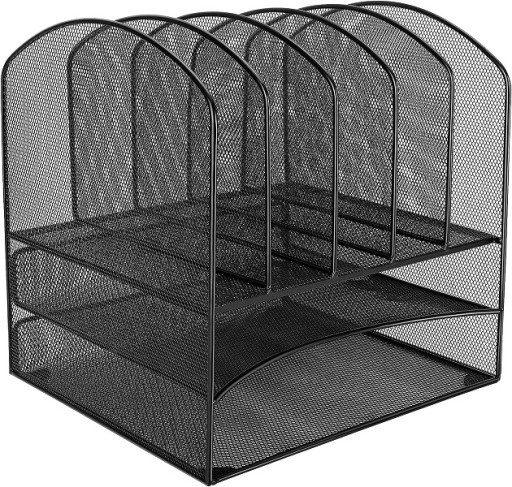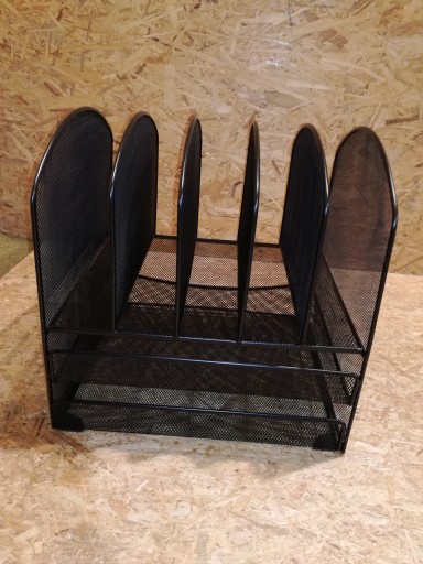 - Organizer na biurko z 5 pionowymi przegródkami do przechowywania plików i 2 tacami na dokumenty pod spodem