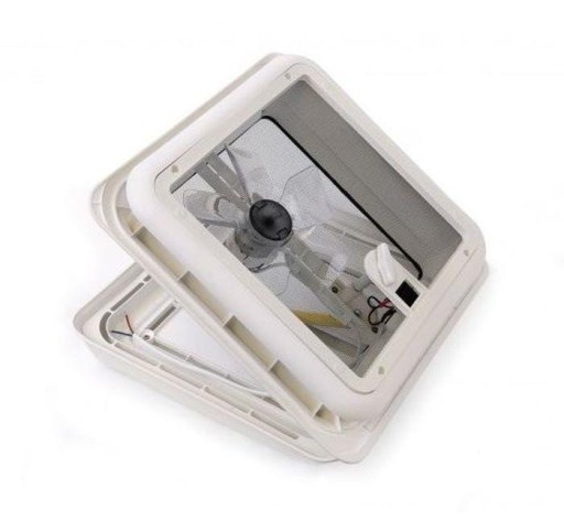 Okno dachowe kampera Fiamma TURBO Vent 12V z wentylatorem 28x28 F białe przyczepa kempingowa
