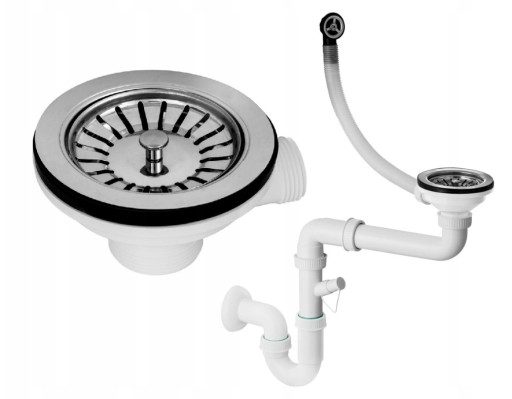 Syfon oraz chromowane zaślepki.