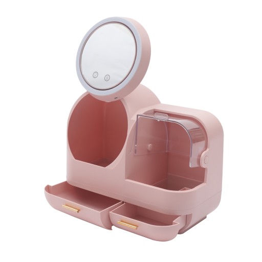 - Pomieszczenie do przechowywania jest zaprojektowane z osłoną, aby zapobiec kurzowi i wilgoci. Przezroczysta pokrywa, wygodna dla Ciebie, aby szybko wybrać ulubione produkty do pielęgnacji skóry.