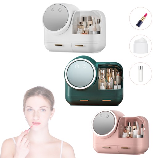 Organizator makijażu, światło LED, lustro HD można obracać. Ładowanie USB z suszarką do włosów w celu promowania wchłaniania balsamu. Organizator makijażu o dużej pojemności.