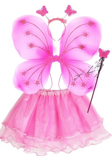 Zestaw zawiera : spódniczkę, skrzydła, opaskę na głowę i różdżkę. Spódniczka składa się z 3 warstw ( posiada podszewkę).