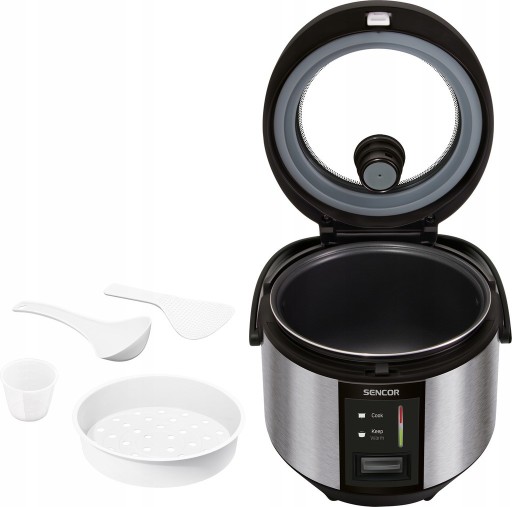 Od dziś ryż możesz gotować na sposób idealny- bez sklejania, przypalania czy przywierania ryżu do naczynia. Zaawansowany technicznie garnek do gotowania ryżu Sencor SRM 1890SS to urządzenie, które sprawdzi się w kuchni każdego, kto lubi przygotowywać dania z ryżu tradycyjnego jak i np. sushi i inne potrawy z każdego rodzaju ryżu. Garnek równomiernie rozprowadza ciepło, co sprawia, iż gotowany ryż ugotowany jest szybko i perfekcyjnie. Gotowanie odbywa się przy użyciu pary, której nadmiar wydostaje się przez otwór w górnej części garnka.
