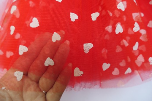 CZERWONA SPÓDNICZKA TIULOWA W BIAŁE SERDUSZKA
