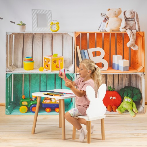 ZESTAW: MEBLE DZIECIĘCE BIAŁE STOLIK 52X70 I KRZESŁO MIŚ