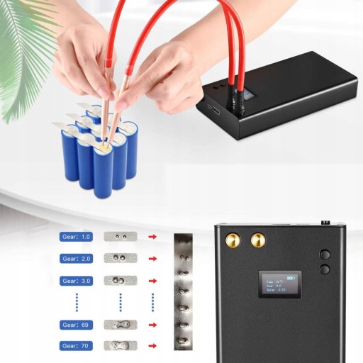 - Ta przenośna zgrzewarka punktowa ma 70 poziomów regulowanej mocy wyjściowej (regulacja zgrubna i precyzyjna regulacja za pomocą przycisku), bardziej precyzyjne spawanie i doskonalszy efekt spawania.